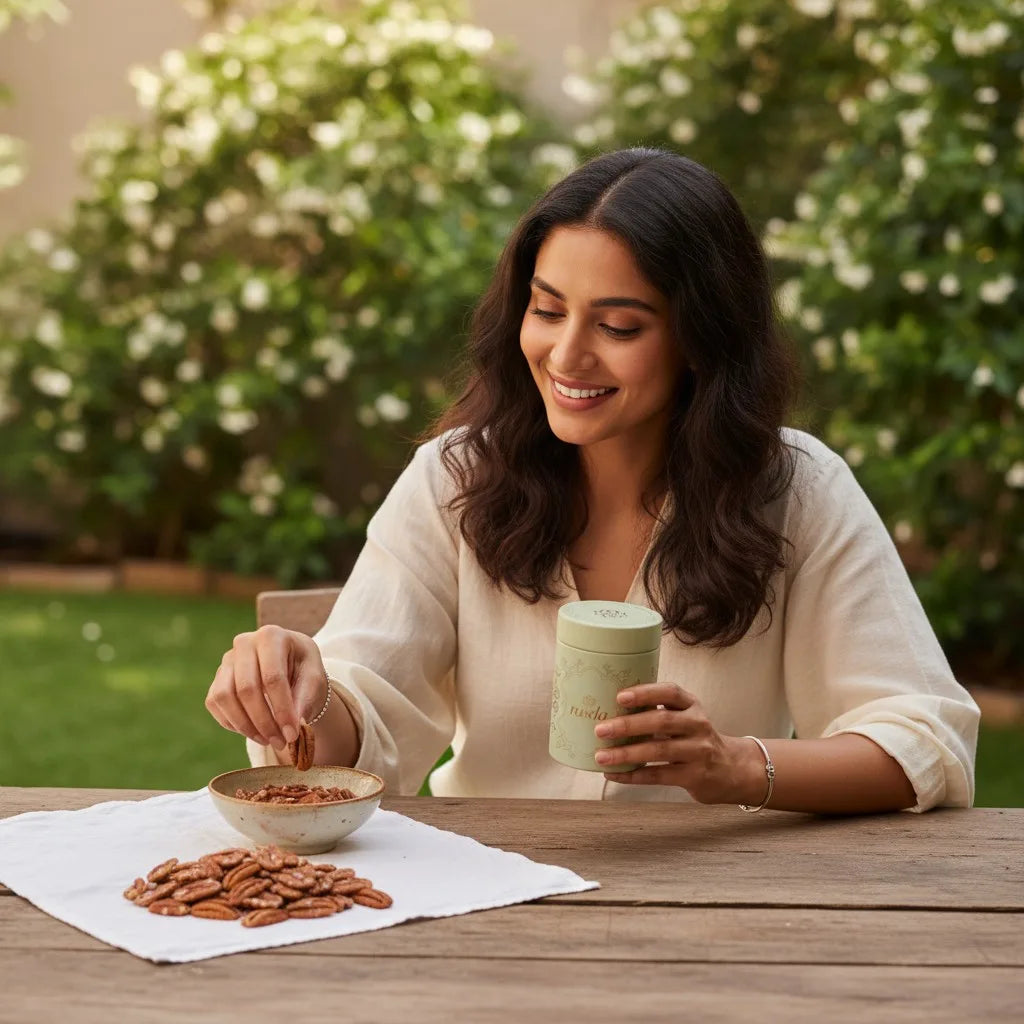 Experience the finest American pecan nuts in India perfectly raw, natural, and extra-fancy graded for exceptional crunch and buttery richness. These light-golden Junior Mammoth halves are larger, fresher, superior taste, 100% raw natural and more premium than regular pecans.