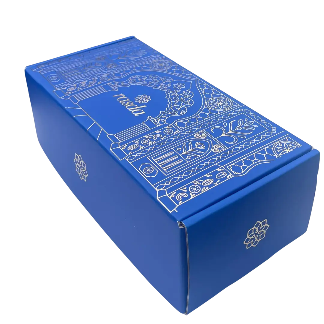 Rangana – Premium Dry Fruit Gift Boxes brings together elegance and freshness in every detail, making it the perfect choice for festive gifting, weddings, and corporate celebrations. Each box features three designer 150g tins of high-quality dry fruits and nuts, packed in a luxury corrugated box with gold foiling. The tins are designed with an airtight rubber-sealed lid to lock in freshness and are completely reusable, adding value beyond the gift itself. Offered in standard premium combinations, these boxes can also be customized with a variety of dry fruits to suit every preference, making the Essence of Festivity and Colors a true celebration of joy, health, and style.