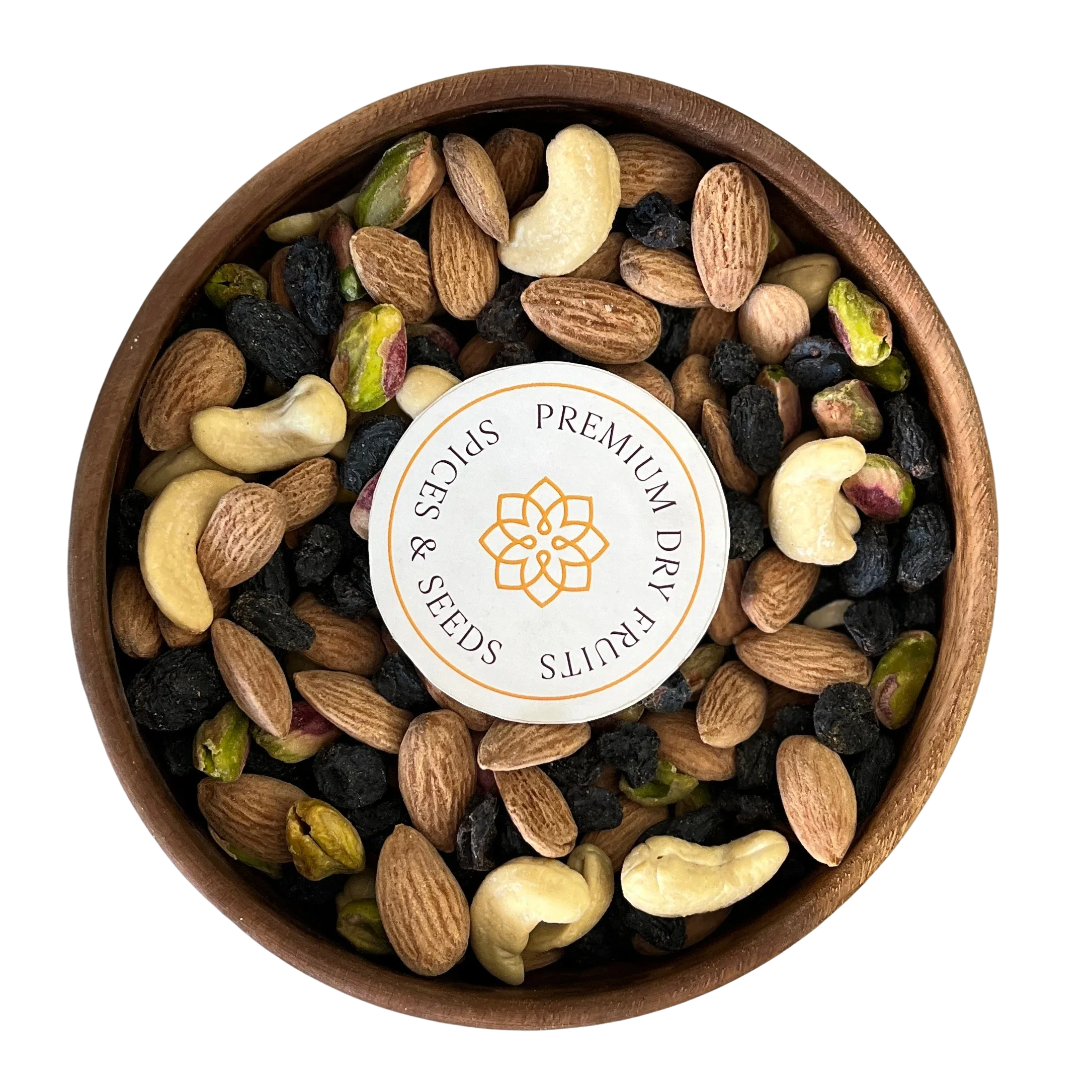 Ingredients: Salted Almonds, Salted Pistas, Black Seedless Raisins and Salted Cashew.